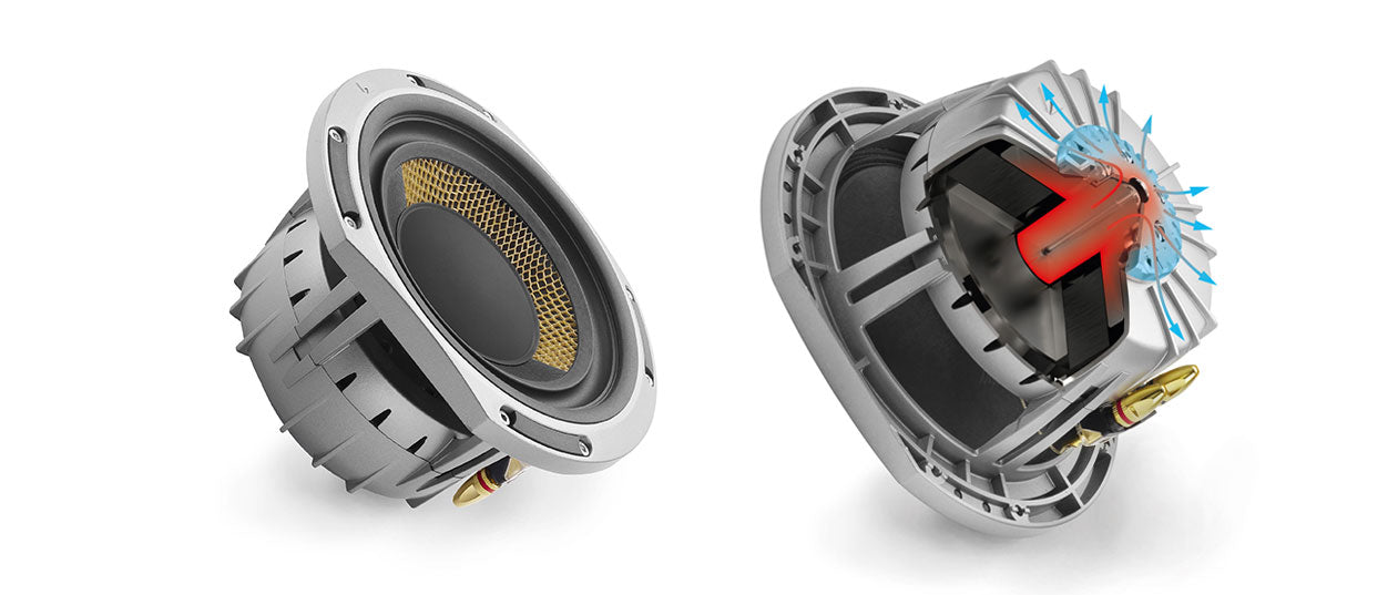 Une étude très poussée a été menée sur les phénomènes vibratoires pour assurer une grande rigidité de l’ébénisterie face aux vibrations engendrées par les haut-parleurs.