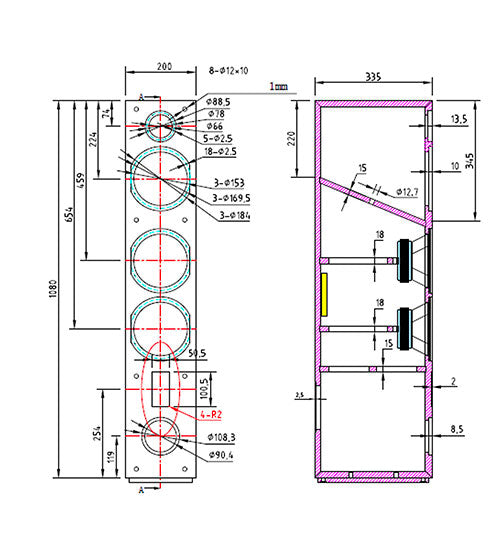 Cette version d’Antal possède également une cloison oblique pour la charge du médium, atténuant ainsi les ondes stationnaires et libérant d’avantage de volume pour les haut-parleurs de grave. L’accumulation de ces divers procédés nous permet d’obtenir un coffret inerte et rigide sans la moindre coloration ou bruit de « boîte ».