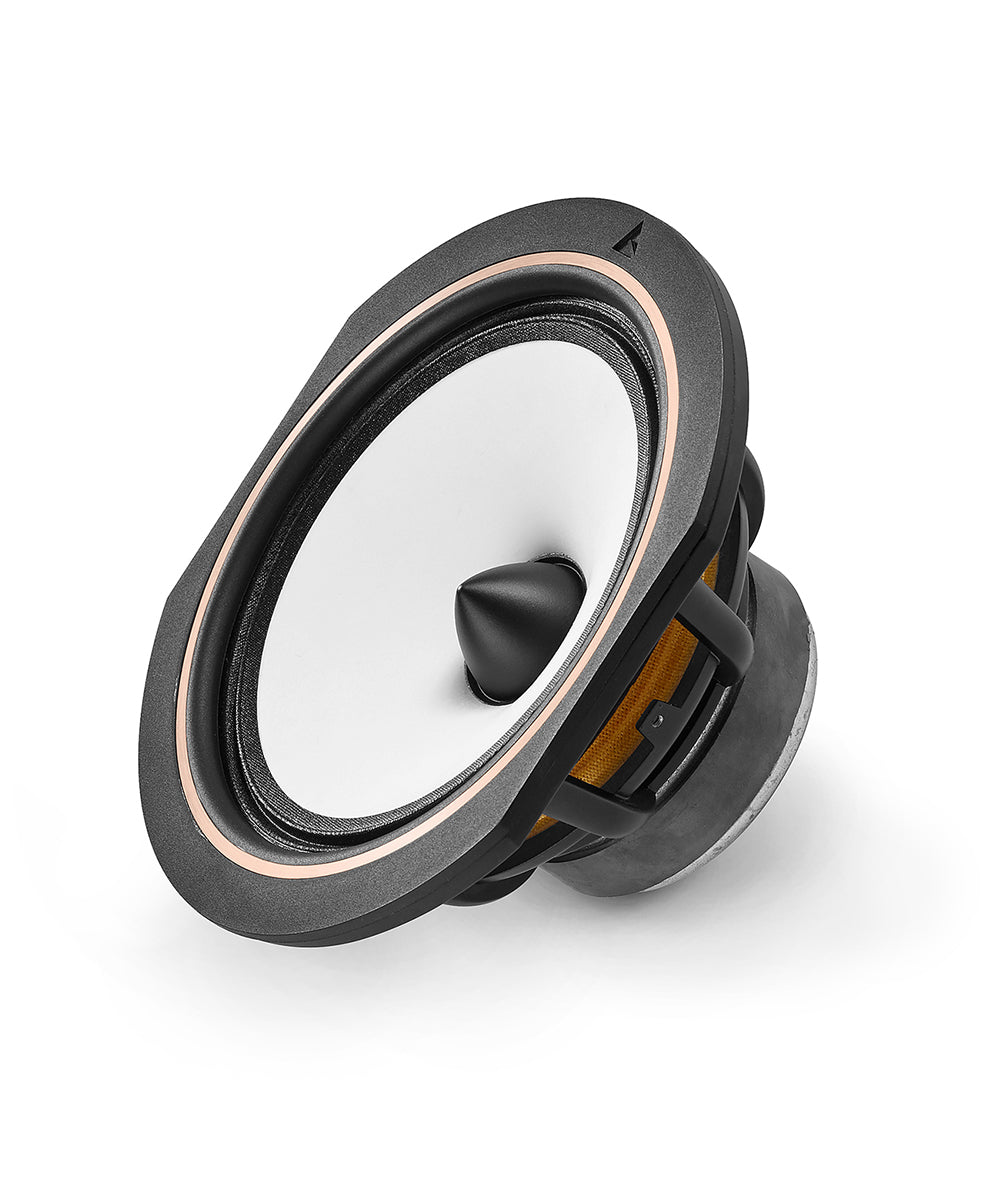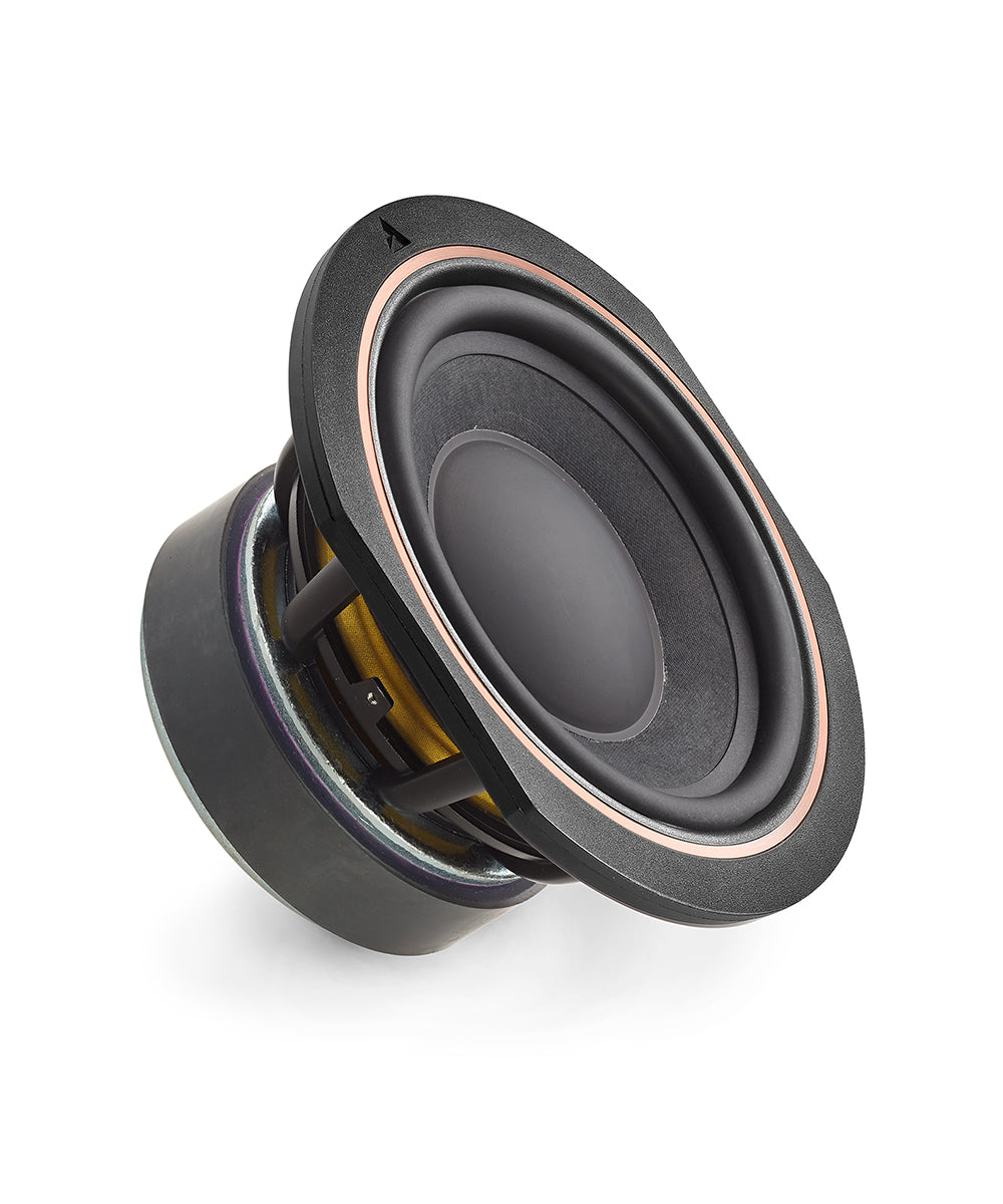 Sur cette série 40ème Anniversaire, l’utilisation inédite d’un dôme composite en magnésium anodisé or rosé, offre à ce tweeter un rendement élevé pour une distorsion contrôlée et une excellente directivité. Le magnésium combine deux qualités recherchées, à savoir légèreté et rigidité. La bobine est directement supportée par le dôme spécialement formé, assurant ainsi un centrage régulier et homogène. Ce principe offre également une très grande uniformité lors de la production.