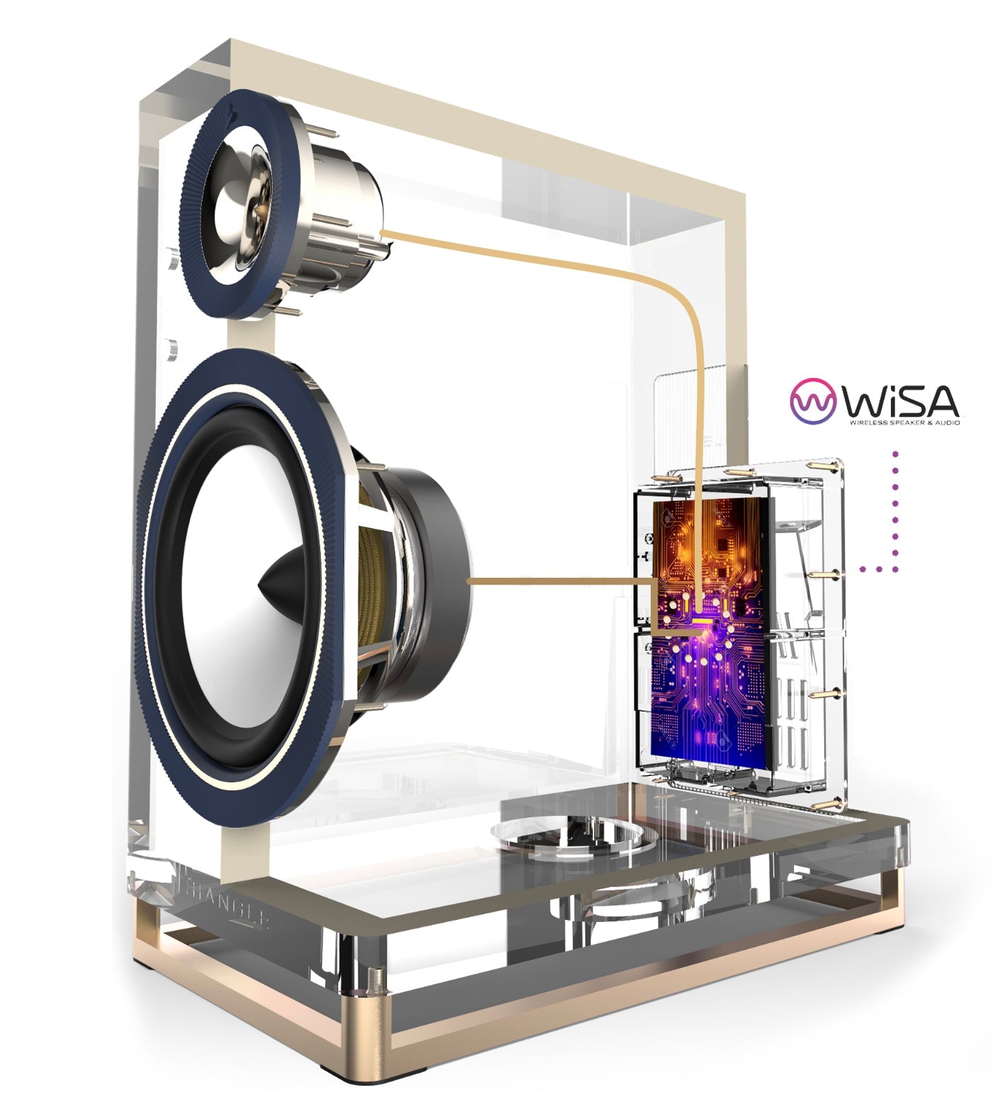 Il transmet ensuite les informations aux enceintes en utilisant la technologie sans fil Wisa qui permet de profiter d’un signal très haute résolution (24bits/96Khz) sans latence perceptible. Il peut ainsi être placé à proximité de la source audio tout en vous laissant la possibilité de positionner librement les enceintes dans la pièce.