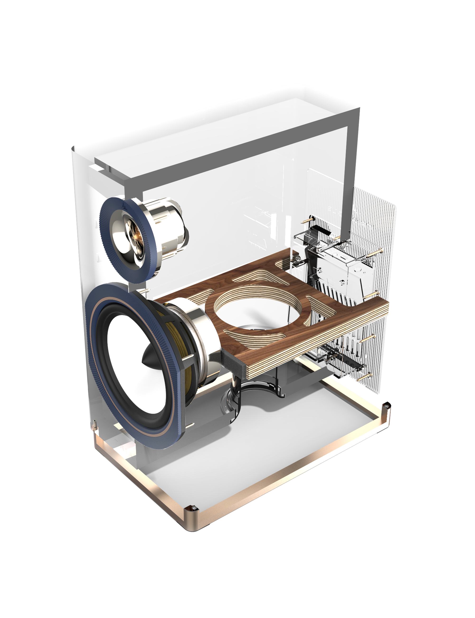 Derrière le vernis se dévoile une sublime essence loupe de noyer, dont les nervures se révèlent progressivement pour disparaitre dans un dégradé de peinture. Les finitions exhibent toutes leurs nuances et leurs contrastes de couleurs, au gré des regards et de la lumière. Le tout est sublimé par les touches raffinées d’aluminium anodisé finition Champagne qui font des enceintes CAPELLA de véritables bijoux sonores.