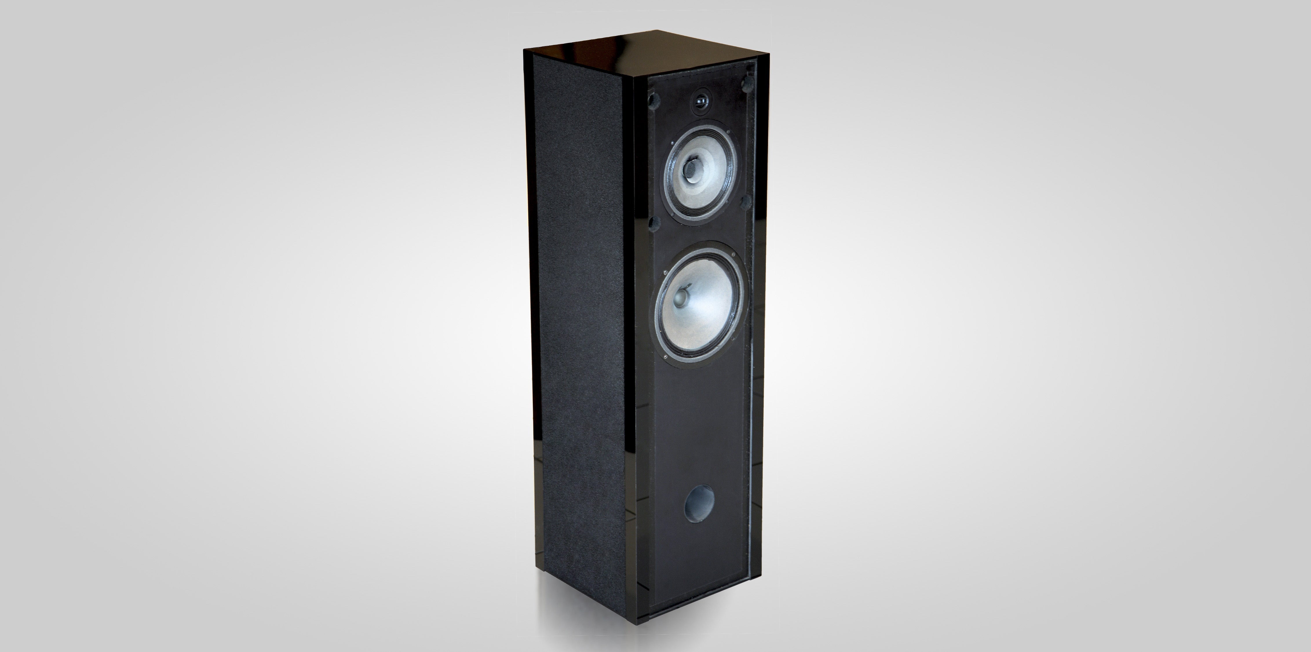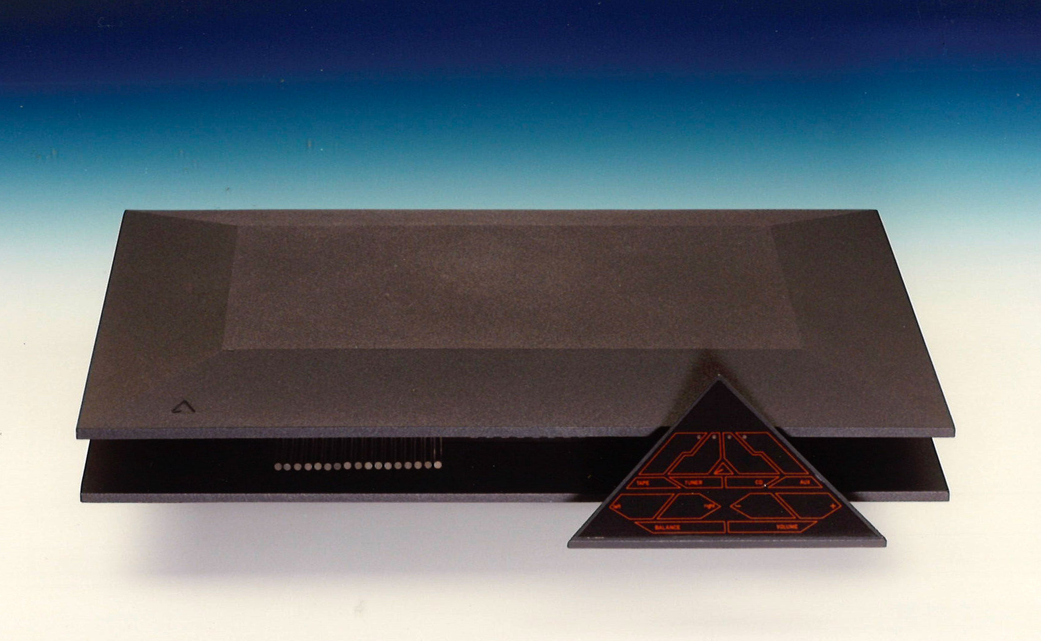 Paris, 1980, Renaud de Vergnettes wanted to break through as a designer of high-fidelity speakers, and prepared an innovative new model with a two-module structure: a woofer cabinet decoupled from the pyramid-shaped upper midrange and treble section. Renaud thus expresses his desire to sculpt elegant, acoustically high-performance sound objects.