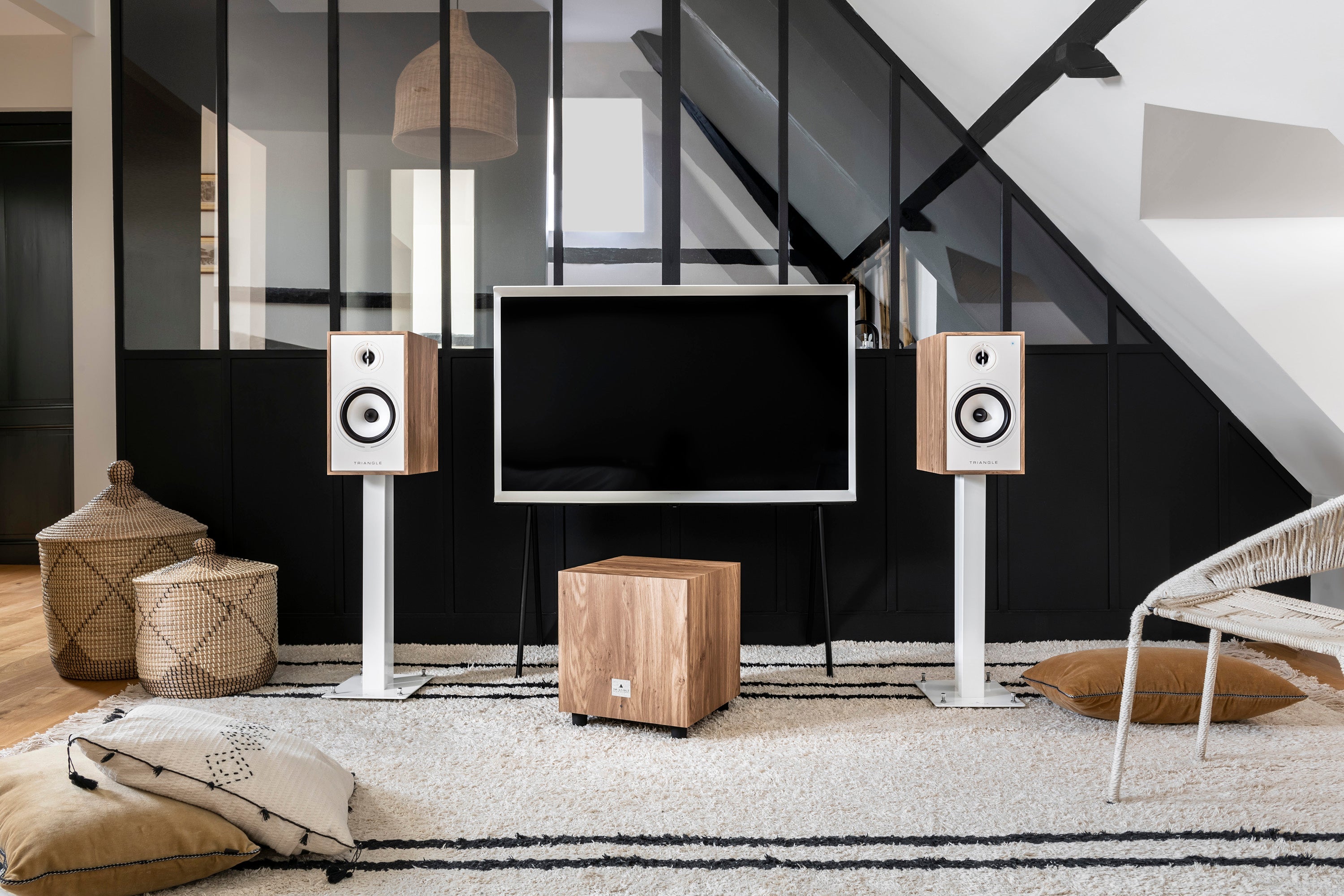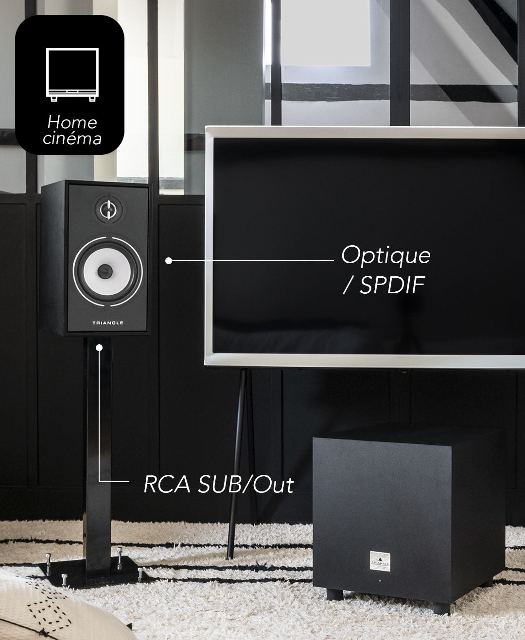 Placed on each side of your screen, they provide high quality stereo sound. There is also a SUB output to connect a subwoofer, such as the Talés 340 for a fuller experience.