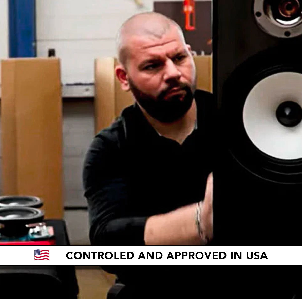 La fibre de verre a été sélectionnée pour son excellent comportement en bas-médium et haut-grave. Innovation ESPRIT EZ, la superposition de matériaux textiles et de fibre de verre améliore la rigidité de la membrane. Le haut-parleur est équipé d’un nouveau saladier dissipant plus rapidement la chaleur dégagée par la bobine.